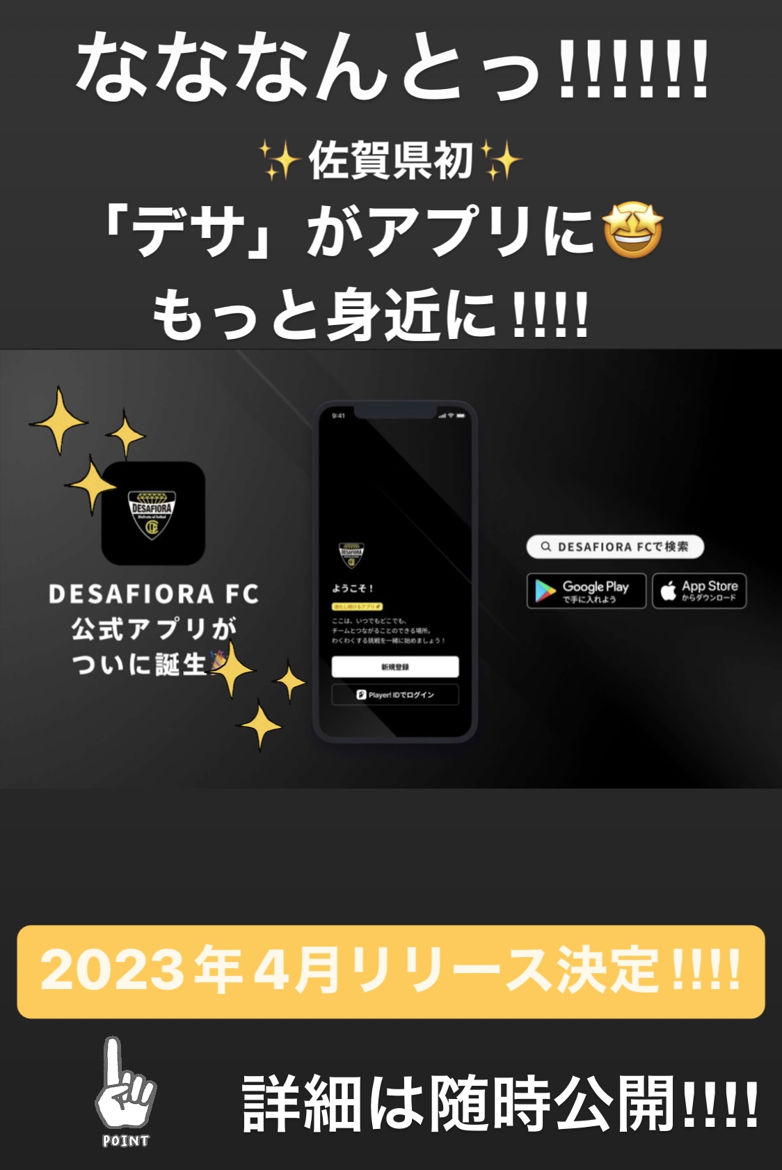 11月52022お知らせDESAFIORA.FCでは2023年4月に公式アプリがリリースされる事が決まりました!! 詳細は随時公開していきます!お楽しみに! カテゴリー: お知らせ2022年11月5日 Share this post Facebook で共有Facebook で共有 Share on XX で共有 ピンするPinterest で共有 LinkedIn で共有LinkedIn で共有 投稿ナビゲーションRelated posts飲む応援!!2022年11月5日OB情報2022年9月20日第2回チームビルディング講習会2022年7月26日ディベロップ九州大会2022年7月22日2022年度佐賀県クラブユース(Uー15)サッカー選手権大会 3位決定戦2022年6月17日2022年度佐賀県クラブユース(Uー15)サッカー選手権大会 準決勝2022年6月17日
